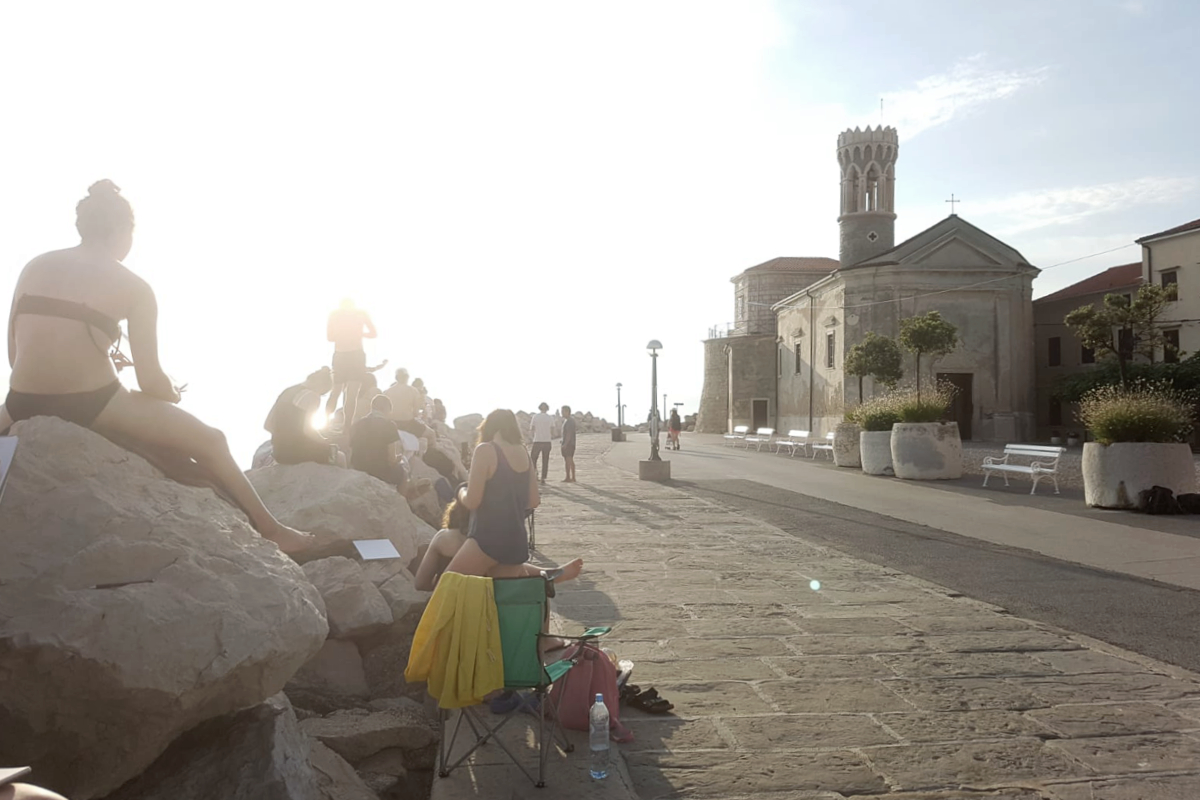 Die Sommerexkursion von Dorothea Voigtländer und Stefan Niese führte nach Ljubljana, Slowenien. Dort durften die Studierenden jeden Tag unter der Sonne skizzieren und zeichnen. Auf dem Plan standen dafür verschiedenste Orte: Kirchen, Friedhöfe und historische Gebäude der Stadt.