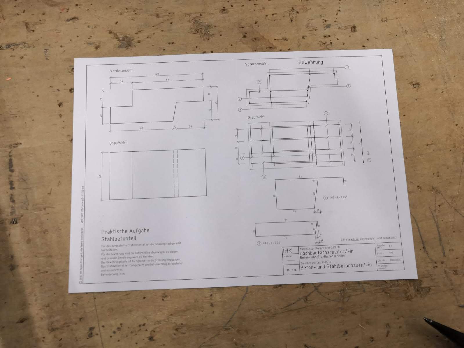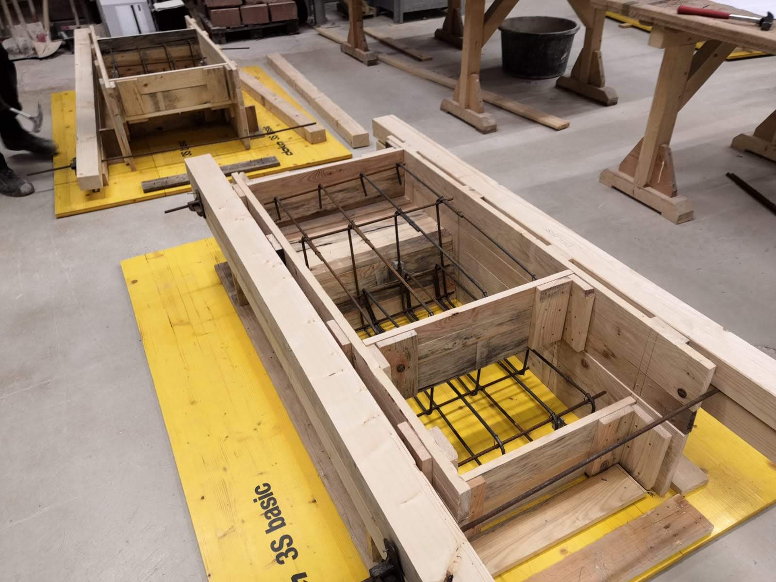 Das erste Jahr des Dualen Studiums verbringt man nur im Ausbildungsbetrieb und in außerbetrieblichen Ausbildungsstätten. Dort bekommt man tiefreichende Einblicke und Praxiserfahrung in den praktischen Bauablauf. In meinem Fall durfte ich nach einer kurzen Einführung ins Unternehmen und dem „Einkleiden“ schon am ersten Tag in der Schalungsabteilung unserer Firma tätig werden. Nach und nach arbeitete ich dann auf mehreren verschiedenen Baustellen, Seite an Seite mit den gewerblichen Angestellten und konnte mir so viele Tipps und Tricks abschauen. Während des ersten Jahres verging eigentlich kein Tag, ohne dass ich etwas Neues lernen konnte – sei es handwerklicher oder auch bautechnischer Natur. Unterbrochen wurde die Arbeit auf der Baustelle alle paar Wochen durch Wochenkurse im Bauindustriezentrum in Nürnberg. Dort wurden handwerkliche Grundlagen und Techniken für die Arbeit auf der Baustelle vermittelt. Einen Aspekt, den ich dort, wie auch in meiner gesamten Ausbildung sehr genossen habe, ist dass man Einblicke und Erfahrungen in vielen anderen Baubereichen sammelt, auch wenn man nur einen bestimmten Beruf erlernt. So lag zum Beispiel für mich als Stahlbetonbauer der Schwerpunkt auf dem Schalungsbau und damit auf der Arbeit mit Holz und Stahl. Trotzdem durfte ich Kurse unter anderem zum Mauern, Kanalbau, Straßenbau, Fließen legen oder Verputzen absolvieren. Während dieser Kurse lernt man viele weitere Duale Studenten und gewerbliche Auszubildende aus ganz Nordbayern kennen und kann dabei, wie auch auf den unzähligen Baustellenbesuchen, immer neue Kontakte knüpfen. Alles in allem bin ich sehr froh über die Erfahrung auf der Baustelle, da ich vom Ausheben der Baugrube über Schalungs-, Bewehrungs- und Betonierarbeiten bis hin zum Aufbau von Baukränen und der Betonannahme bei der Betonage schon alles mal selbst machen durfte.