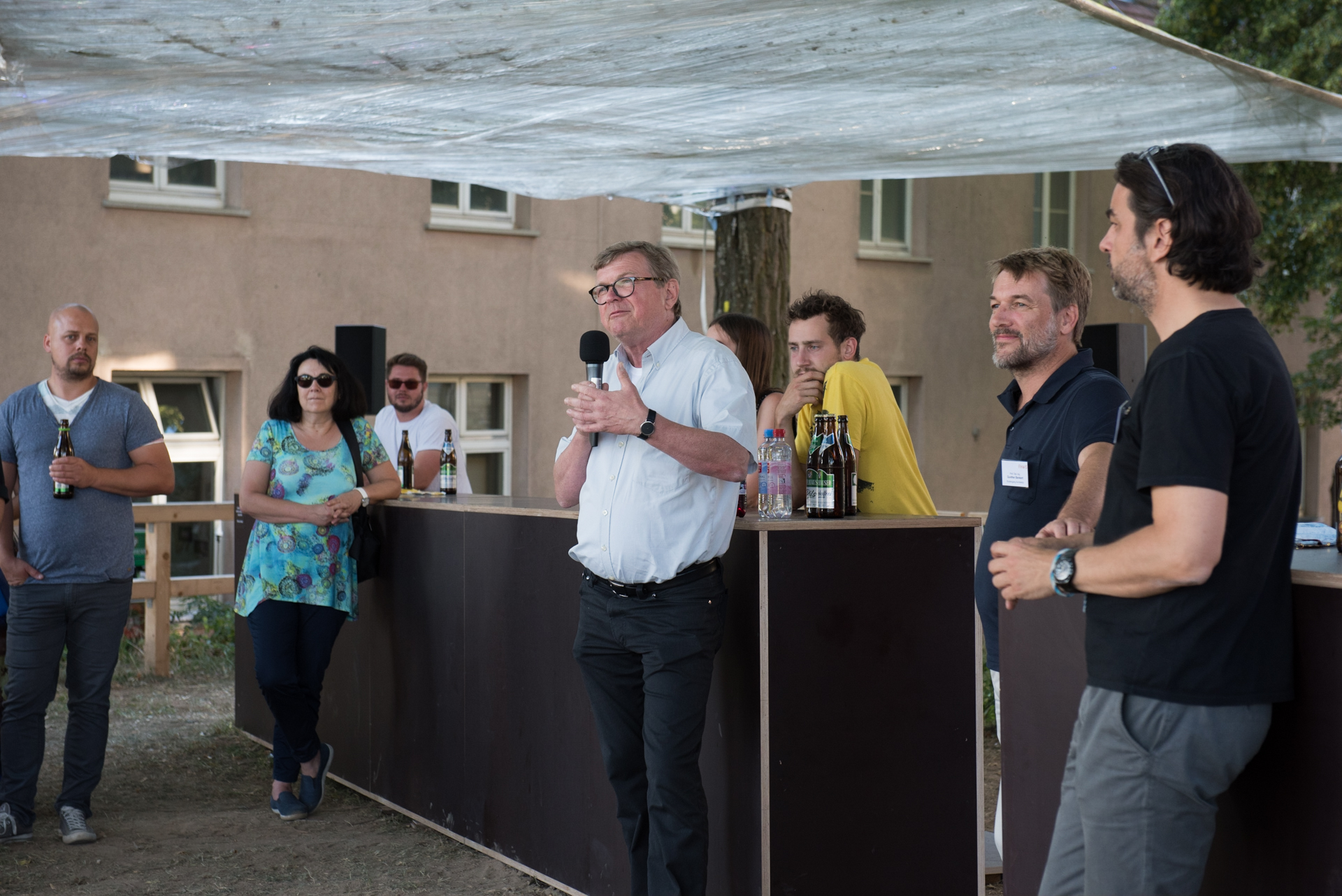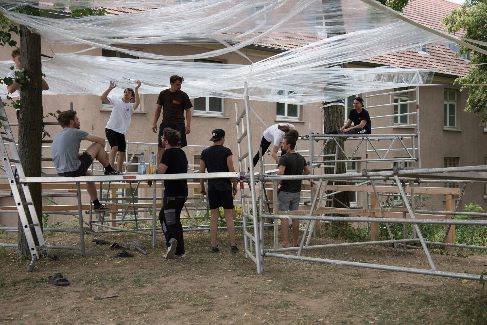 Das Projekt startete bereits im Wintersemester 2017/2018. Damals arbeiteten 11 Studierende gemeinsam mit ihrem Professor Stefan Niese an einer Rauminstallation, die später auch einmal realisiert werden sollte. Über zwei Semester wurde im Rahmen eines Wahlpflichtfaches über die Materialität, die Konstruktion sowie über die Realisierbarkeit diskutiert. Das Ergebnis zeigte sich in Form einer raumüberspannenden temporären Raumhülle, die in ihrer Erscheinung nicht nur zum Verweilen an der Bar einlud, sondern auch zu einem nächtlichen Zeichen des Architekturwochenendes wurde.