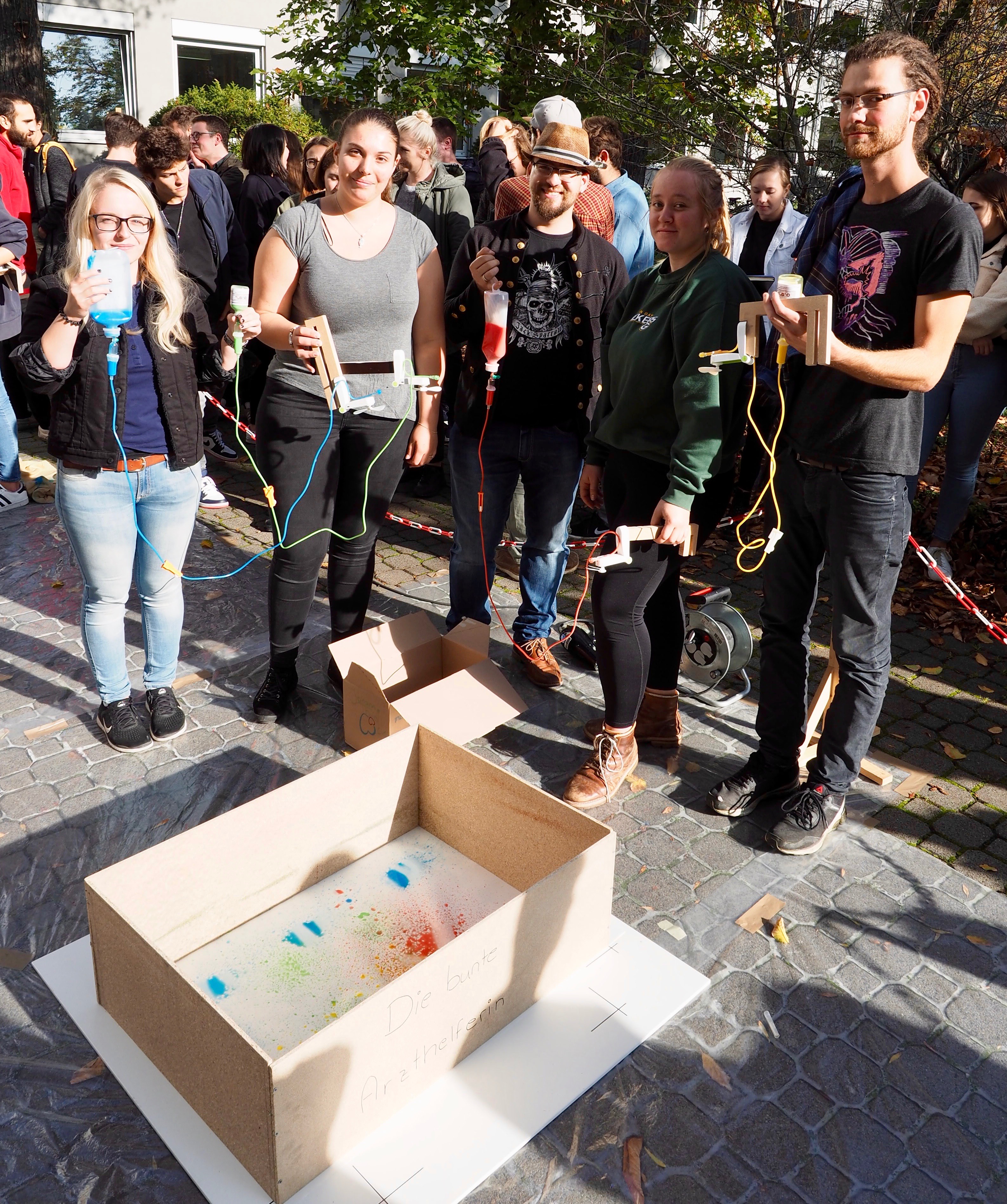 Am Dienstag, den 22.10.2019 war es dann so weit. Der Vorhof der FH wurde zur Bühne der unterschiedlichsten Apparaturen, die ausnahmslos dem Anspruch gerecht wurden, funktional und poetisch zugleich zu sein.
