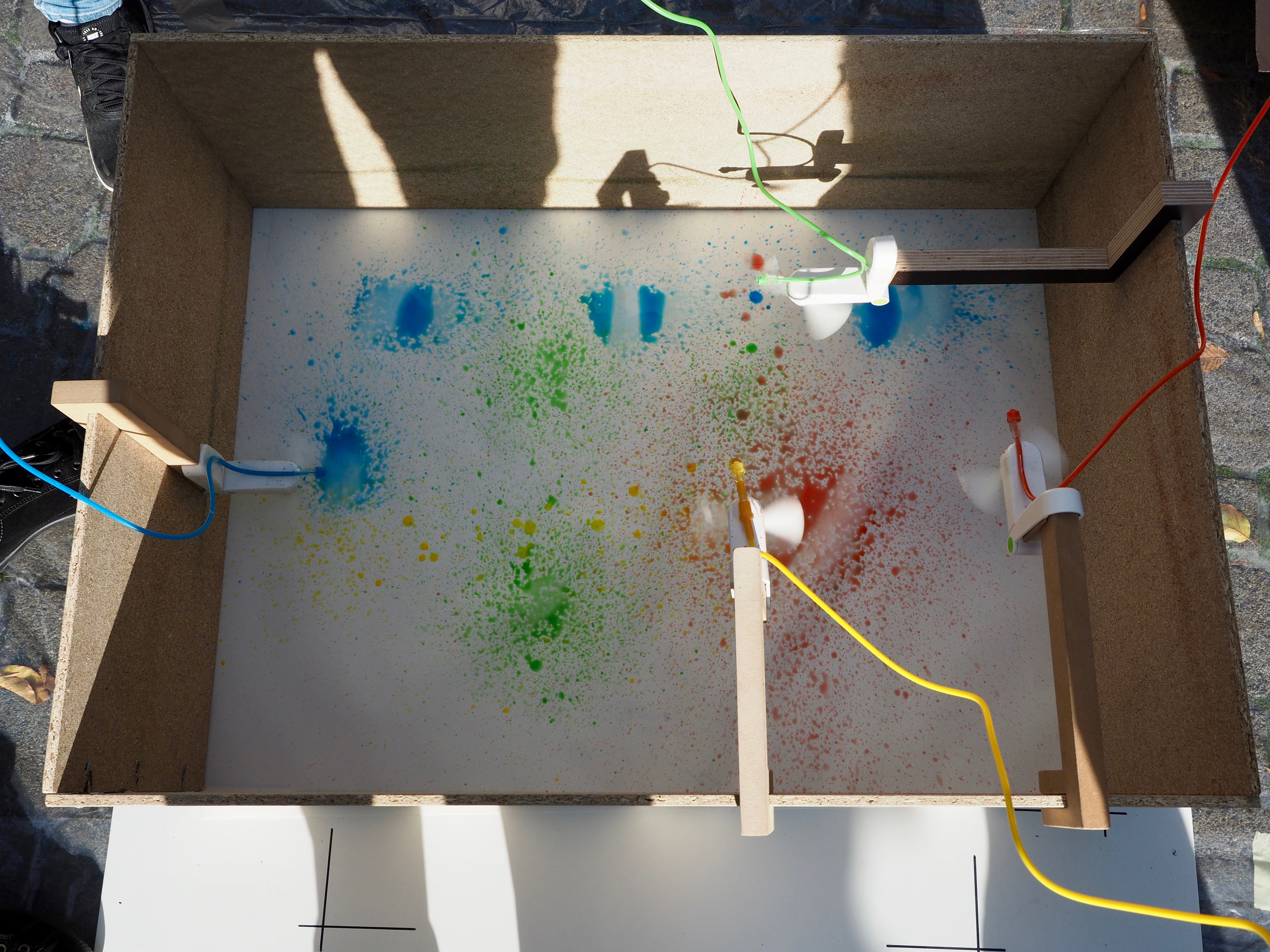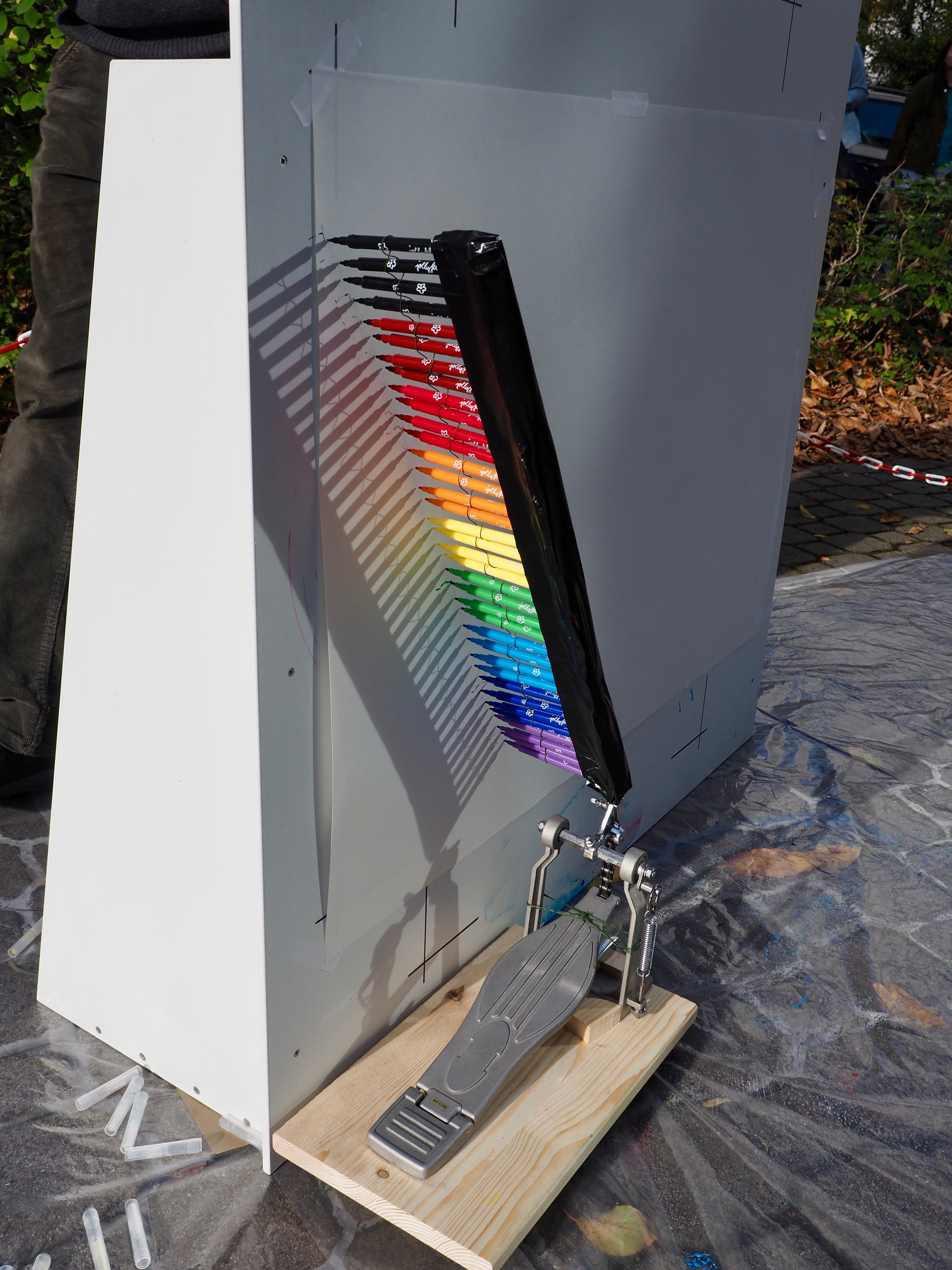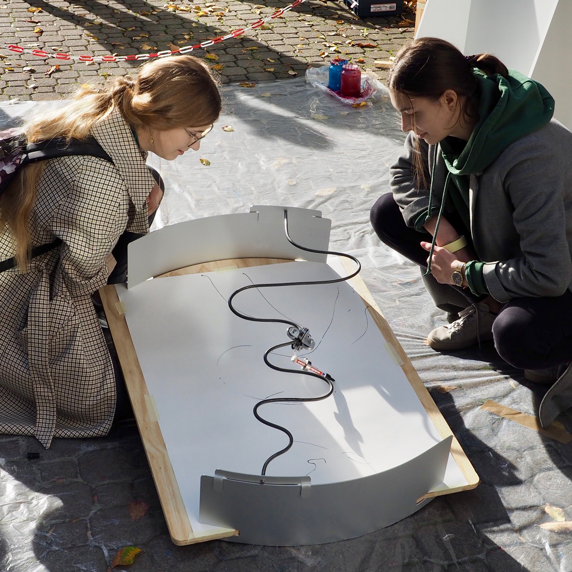 Sie sollten einen Apparat erschaffen, der Linien, Flächen, Helligkeiten, Kontraste und Farbspiele auf ein vorgegebenes Zeichenmedium zaubert. Die bildnerischen Ergebnisse sollten in einem poetischen Zusammenhang mit ihrem Schöpfer, also der Maschine, stehen!